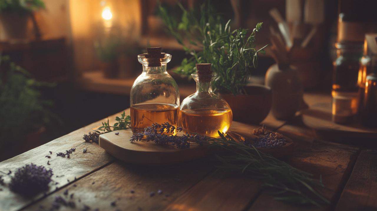 Les huiles essentielles représentent une solution naturelle face à la gale. L'huile essentielle de tea tree, grâce à ses propriétés antiparasitaires, s'utilise diluée dans l'huile d'amande douce (5 gouttes pour une cuillère à soupe). L'huile de clou de girofle, riche en eugénol, montre une action acaricide puissante sur les parasites. Une synergie efficace combine le tea tree, le clou de girofle, la lavande et le géranium, à diluer dans un macérât de calendula. L'application se fait matin et soir sur les zones touchées, en évitant les muqueuses.